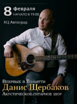 Данис Щербаков - настоящий маэстро в области игры на акустической гитаре, виртуоз, аранжировщик и композитор, получивший высшее образование в престижной Казанской госконсерватории. Его музыкальный путь охватывает эклектичную смесь жанров, с особым акцентом на кантри, блюз, ирландскую музыку и цыганский джаз. Щербакова отличает способность органично вплетать эти жанры в свои композиции и аранжировки, создавая самобытный и не имеющий аналогов стиль игры. Щербаков — не просто исполнитель, он настоящий художник, активно формирующий свой музыкальный ландшафт. Его концертный репертуар свидетельствует о его многогранности: от сольных программ, демонстрирующих его индивидуальный блеск, до совместных выступлений в качестве важного участника ансамбля DanisAcousticBand.