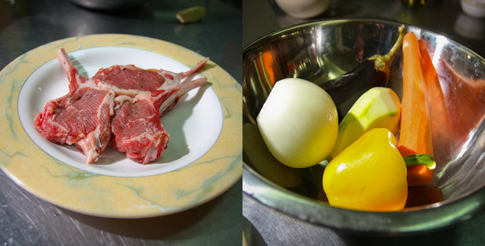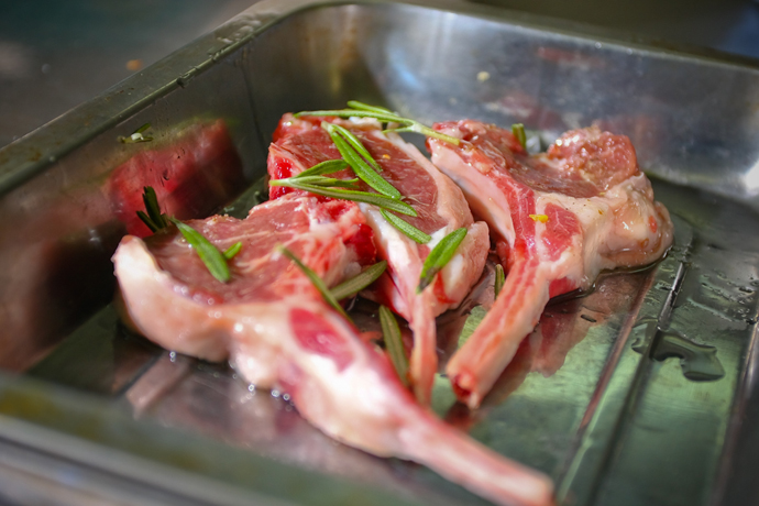 6. Вот он – момент истины. Замаринованное в масле и специях мясо ягенка жарим так, чтобы снаружи образовалась корочка, а внутри оно было мягким и сыроватым. Итак, ребрышки жарим не дольше 3 минут на чугунном гриле. Результат: мясо сочное и мягкое – ловкость рук и никакого мошенничества!