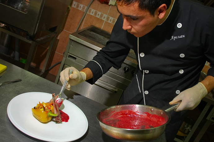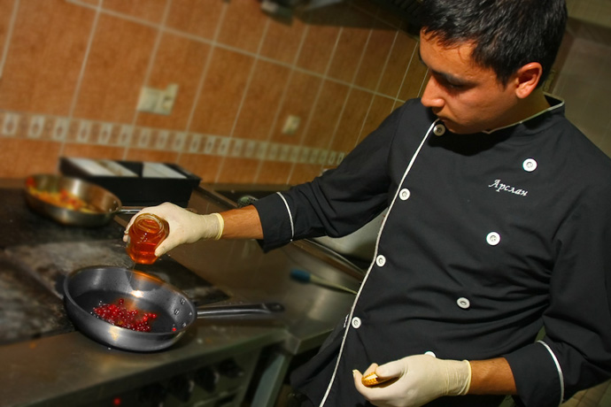 Оказывается, ничего не может быть лучше, чем вкусить нежное мясо ягненка, предварительно обмакнув его в кисло-сладкий клюквенный соус. Об этом ПРО-ОТДЫХу рассказал су-шеф ресторана «Мавританский дворик» Арслан. И даже больше – провел для нас мастер-класс по приготовлению этого традиционного марокканского блюда.