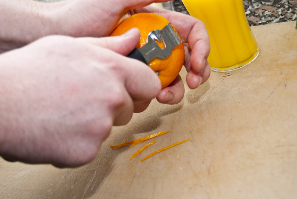 После этого начинаем очищать апельсин от цедры. Кстати, во многие блюда лучше добавлять цедру, чем сок. Цедра обладает насыщенным вкусом и ароматом.