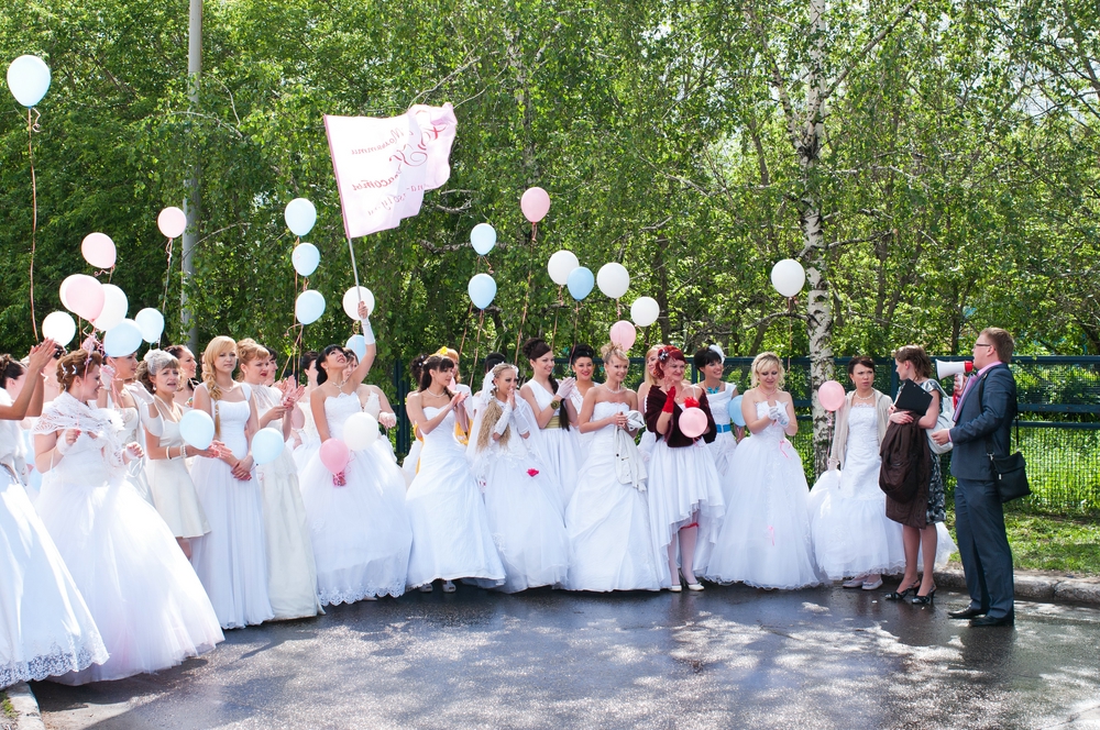 Заявки на участие посыпались со всех сторон. Причем как от замужних дам, для которых парад – это прекрасный повод достать свое свадебное платье и вновь почувствовать себя королевой, так и от незамужних – для них акция может стать репетицией собственной свадьбы. В итоге, после нескольких личных встреч и общения на форуме, из 120 претенденток была отобрана 41 счастливица! И вот тогда закипела работа…Почти два месяца девушки-«невесты», разделившись на 4 группы, без устали творили: сочиняли, рисовали, шили, вязали, пели и танцевали!!! Даже те, кто никогда не брал в руки иголки с нитками, а уж тем более спицы, к началу парада готов был открыть свое ателье – еще бы, трудиться над образами приходилось и днями, и ночами! «Я за месяц научилась шить, над чем безрезультатно годами бились учителя по труду» - с гордостью похвасталась Александрова Ксения. «А я сама придумала и связала себе платье. И мне даже приснилось, что именно в нем я выхожу замуж» - призналась другая Елена Ершова.