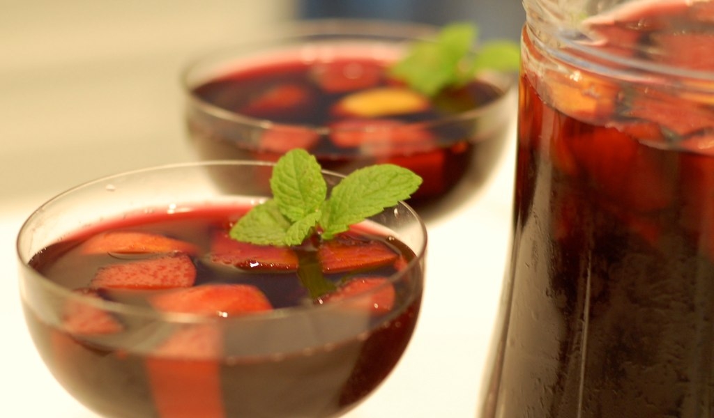 5. Снова коктейль с вином. Но на этот раз красным. Называется сей напиток "Сангрия". Ингридиенты на 8 порций (угости себя и друга, что называется): 50 гр сахара, 1 порезанный апельсин, 1 порезанный лайм или лимон, 1 бутылка красного вина, лед. Рецепт приготовления таков. Положите сахар в маленькую кастрюлю в 50 мл воды. Подогрейте на медленном огне, помешивая, пока сахар не растворится. Затем закиньте кусочки лимона и апельсина в большую огнеупорную миску, залейте горячим сиропом и отставьте миску, чтобы сироп остыл. Осталось добавить вино и кубики льда. Перемешайте. Сангрию переливают в высокий кувшин и подают сразу же. Можете предварительно разложить по несколько ложек фруктов в каждый бокал.