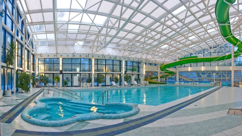 Ну и развлечений для души и тела в санатории предостаточно. Отдыхающим предлагаются дополнительные услуги: оборудованный конференцзал, аквапарк. с каскадом бассейнов и 90-метровой горкой— жемчужина санатория. Также есть сауна с бассейном и джакузи. Спортивный зал площадью 392 кв м с европейским покрытием (волейбол, баскетбол, большой теннис и т. д.), тренажерный зал, оснащенный кардио- и силовыми тренажерами, а также уникальным оборудованием: