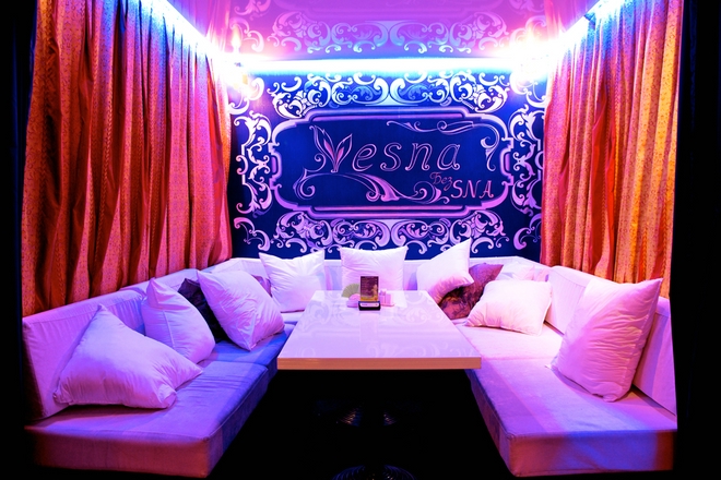 Ресторан «Vesna» может похвастаться кальян-баром. Неповторимый интерьер в европейском стиле, особое синеватое освещение, клубящийся ароматный кальян унесут Вас от будничной суеты. Здесь делают уникальные кальяны «Медузы». Это и зрелище, и удовольствие - два в одном. Обязательно побалуйте себя неповторимым вкусом! И мифическим действом… В кальянной можно получить консультацию профессионального мастера по приготовлению кальянов. К услугам гостей заведения - несколько небольших уютных зон, а также более просторное помещение для большой компании. Общая вместимость - 50 человек.