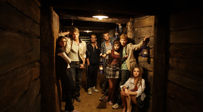 Что еще…Да в принципе ничего. Только вот очень хочется подметить тенденцию – все чаще события российских ужастиков разворачиваются на фоне декораций, изображающих наше славное советское прошлое. «Смерть советским детям» - заброшенный пионерский лагерь с жуткими фигурами горнистов и трубачей, «Груз 200» - маньяк, орудующий под добрейшую песню «Вологда». Для «Фобоса» выбрали не просто бункер, а самый что ни на есть КГБшный. Отсюда, собственно, и произрастает корень зла. Цитируя слова одной из героинь: «Здесь были невинно убиты и замучены сотни людей. Их страданиями пропитан каждый сантиметр этого подземелья». Из антуража: ретро-телефоны, которые звонят сами по себе, таинственные лаборатории, коллективные могилы и портрет Сталина, к которому герои очень боятся поворачиваться спиной. Кажется, страна нашла свою национальную страшилку. Интересно, как скоро мы начнем пугать детей портретом Великого Вождя?