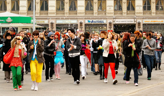 Толпа молодых и зрелых, мальчиков и девочек, вычурных фриков и вполне вменяемых личностей - все они пускают мыльные пузыри, прогуливаясь по заранее известному маршруту и улыбаясь прохожим.