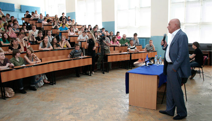 Сначала Познер прохворал на «Олимпиаде» в Ванкувере, затем появились новые препятствия. И все-таки 12 мая Владимир Познер, первый президент Академии Российского телевидения, приехал в Тольятти с телемарафоном «Время жить», одним из авторов которого он является. Вечерний эфир ВАЗовского телевидения был отдан под ток-шоу, где обсуждались проблемы венерических заболеваний и СПИДа. В Тольятти эта проблема, как известно, весьма актуальна. Но в аудиторию Тольяттинского государственного университета Познер пришел говорить не только на тему телемарафона.