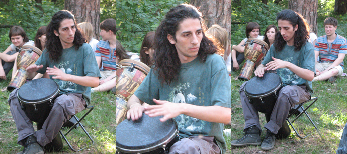 - Я выбираю тех, кто готов связать свою жизнь с музыкой по-настоящему. У меня есть знание, есть определенный опыт, который я готов передать. Но передать только тем, кто способен воспринять все это. Моя музыка – это мое ремесло. Люди в тех же столицах оставляют огромные деньги в многочисленных школах этнической музыки. Был я в одной из таких школ: прикинулся начинающим любителем перкуссии. Мне выдали барабан, посадили в круг и…два часа мы наигрывали какой-то африканский ритм. На этом урок закончился. Люди отдали деньги и разошлись.