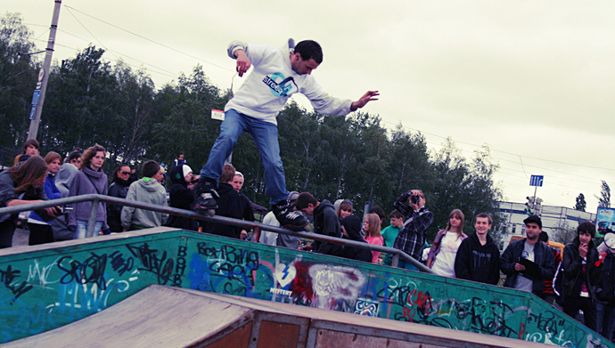 В отличие от одноименного медицинского термина симптомы фестиваля объяснялись легко. Дрожь в теле - следствие не особо благосклонной к экстремальщикам и зрителям погоды. Ну а ускоренная работа сердца, думается мне, последствие работы гормонов, активизировавшихся от огромного скопления проамериканских парней, выделываюштх финты на скейтах или велосипедах (а то и вовсе на своих двух, если говорить о танцорах) всего в паре сантиметрах от меня. Би-бои с легким налетом «нехорошести», скейтеры в узких джинсах, небрежно побритые рокеры, рэпперы с речитативами о любви и городских трущобах (или в некоторых случаях – любви к городским трущобам), гонщики в спецформе почти как у Formula1 и даже один розовый заяц, бодро отплясывающий вместе с рэп-командой «ШтрИ-Х». «Нашей целью было объединить всю активную молодежь города, собрать всех вместе. Ведь это люди, которые ни при каких иных обстоятельствах не встретились бы», - рассказывает один из организаторов феста Антон Зотов.