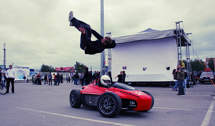 Действительно, сегодня здесь собралась молодежь всех мастей и предпочтений. Невольно напрашивается параллель из очень известной сказки, только немного перефразированная. Налево пойдешь – танцоров со стритболистами найдешь, направо пойдешь - к экстремальщикам придешь, прямо пойдешь - в зону живой музыки попадешь. Еще варианты – «Formula Student» удивляет своим болидом молодежь, еще не видевшую это техническое чудо, а где-то рядом, если очень постараться, можно найти паркуровцев. Не хватает только обещанных байкеров, но эти претензии - уже к руководству «ПаркХауса», высказавшему опасения за безопасность.