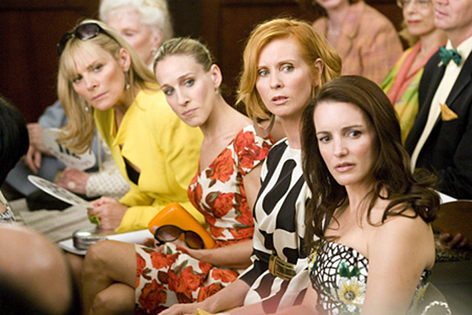 Так вот. Разряженные, неприятно молодящиеся тетки на протяжении всего этого кинематографического кошмара хлопают фальшивыми ресницами, сорят деньгами и закатывают истерики в пространстве, сильно напоминающем рекламные ролики. Судите сами. Биг больше не водит Кэрри по ресторанам — истерика и развод! Миранда не находит понимания с новым боссом фирмы — увольнение! Шарлотта не справляется с детьми (а не надо заниматься приготовлением нарядных пирожных в белой юбке, на которой так и хочется оставить отпечаток измазанных ладошек) — самое время рвануть в ОАЭ! Только Саманта по-прежнему остается королевой любой ситуации, но и она превращается в забавную пародию на саму себя и современное американское общество, страдающее гедонизмом, помноженным на массовое потребительство. В кульминационном моменте она, стоя на коленях и потрясая презервативами, вопит что-то вроде: "Да, я е....сь. Посмотрите на меня!". Если прибавить к этому ее панический страх перед менопаузой и крепкую зависимость от гормонов, картина получится прямо-таки остросоциальная. Пиар-отдел «Аль-Каиды» должен срочно записать сие достижение на свой счет и требовать премию.